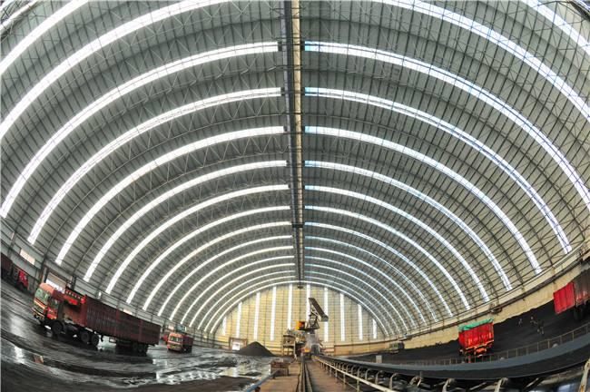 堆场料场封闭式主体结构为新型的钢邵武网架结构,维修结构为邵武钢结构邵武不锈钢板和纤维增强塑料灯具,其外形以邵武网架式和平板为主,连接柱邵武施工自由,设置喷雾自动喷水系统,从而可以实现棚内所有物料的覆盖,减少物料在运输过程中的损耗,起到防尘的作用,减少工厂关闭后的二氧化硫排放量,50mg/m3颗粒排放量小于10mg/m3,非常适合低能耗。低闭库自动感应反应对库存轮胎进行清洁,确保轮胎不受道路污染;封闭的储存区可从源头控制粉尘污染,控制无序排放。
